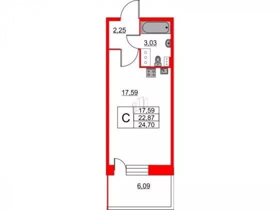 Продается однокомнатная квартира, 24.7 кв.м., 9/12 эт
