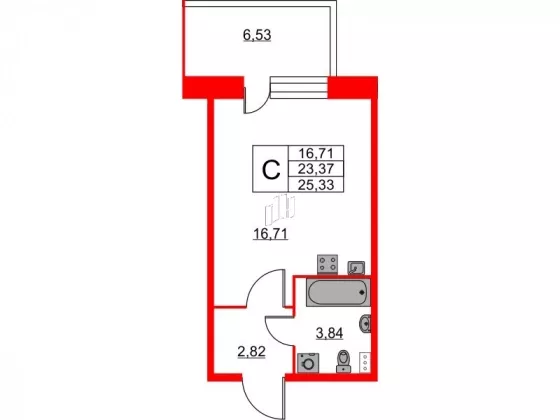 Продается однокомнатная квартира, 25.33 кв.м., 2/12 эт