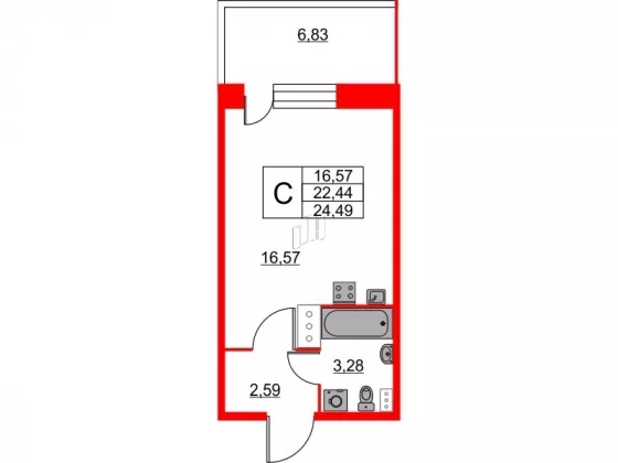Продается однокомнатная квартира, 24.49 кв.м., 9/12 эт