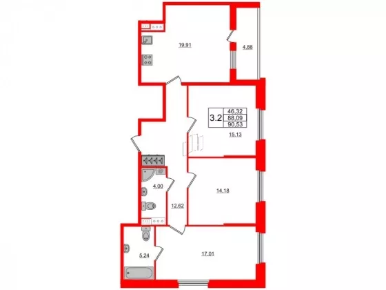 | Площадь кухни, кв.м. | 19.91 |