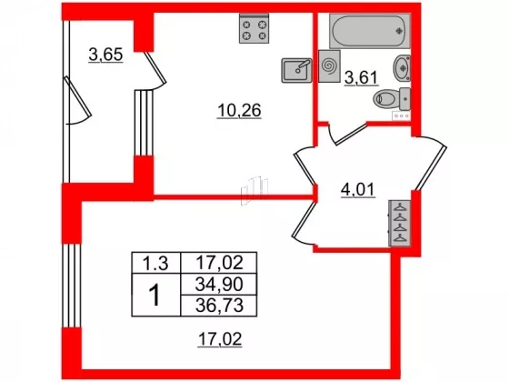 Продается однокомнатная квартира, 34.9 кв.м., 1/5 эт