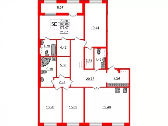 Продается 4-х комн. квартира, 170 кв.м., 5/8 эт