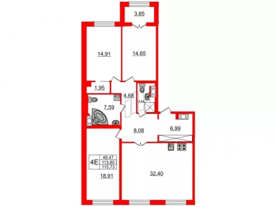 Продается 3-х комн. квартира, 114.1 кв.м., 2/8 эт