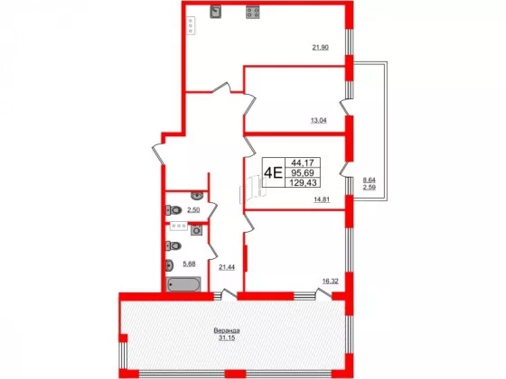 Продается 3-х комн. квартира, 129.43 кв.м., 15/16 эт