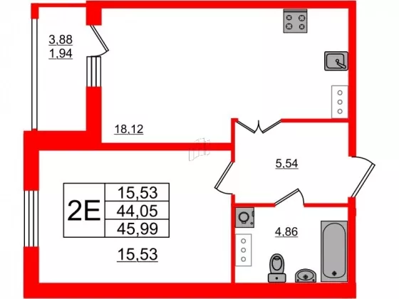 Продается однокомнатная квартира, 45.99 кв.м., 11/16 эт