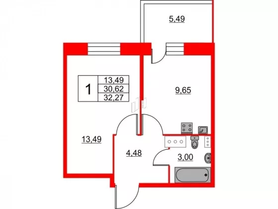 Продается однокомнатная квартира, 32.27 кв.м., 12/12 эт