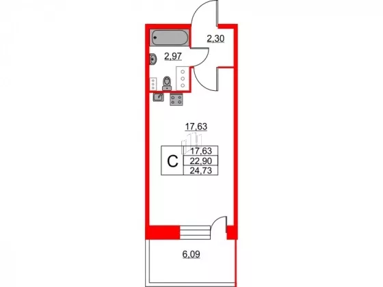 Продается однокомнатная квартира, 24.73 кв.м., 8/12 эт
