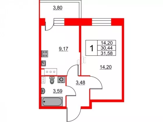Продается однокомнатная квартира, 31.58 кв.м., 9/12 эт