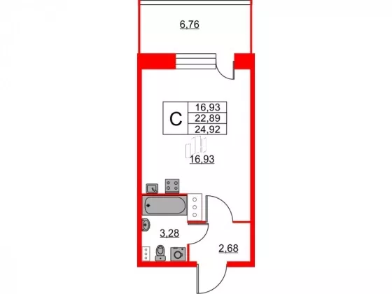 Продается однокомнатная квартира, 24.92 кв.м., 7/12 эт
