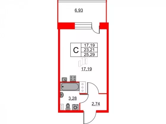 Продается однокомнатная квартира, 25.29 кв.м., 4/12 эт