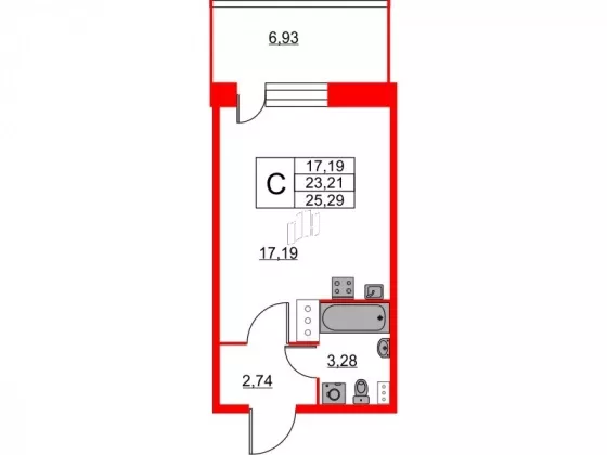 Продается однокомнатная квартира, 25.29 кв.м., 4/12 эт