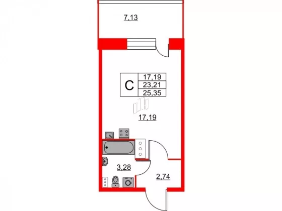 Продается однокомнатная квартира, 25.35 кв.м., 4/12 эт