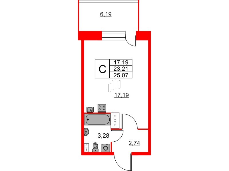 Продается однокомнатная квартира, 25.07 кв.м., 8/12 эт