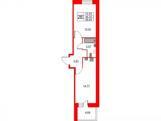 Продается однокомнатная квартира, 38.64 кв.м., 2/12 эт
