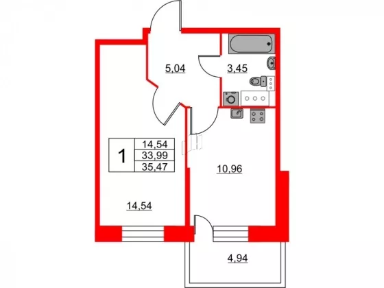 Продается однокомнатная квартира, 35.47 кв.м., 7/12 эт