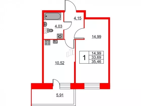 Продается однокомнатная квартира, 35.46 кв.м., 2/12 эт