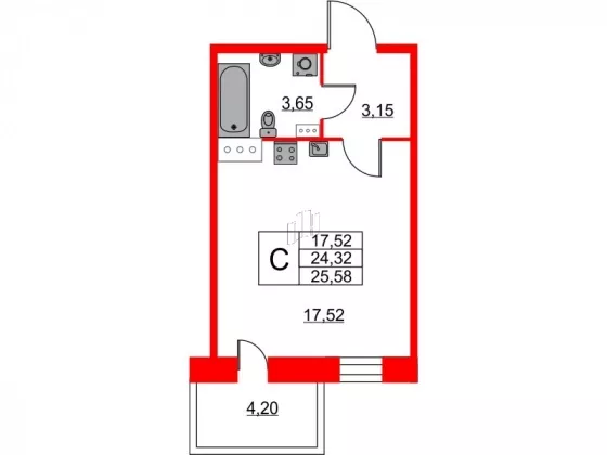 Продается однокомнатная квартира, 25.58 кв.м., 10/12 эт