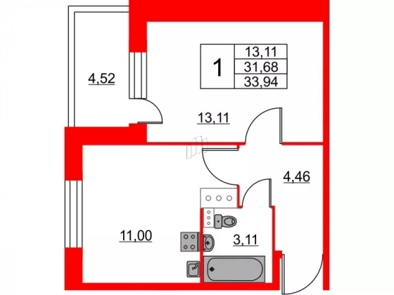 Продается однокомнатная квартира, 33.94 кв.м., 4/12 эт