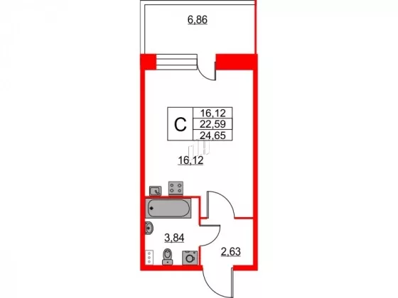 | Площадь, кв.м. | 24.65 |