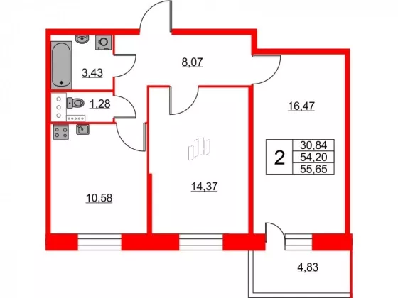 Продается 2-х комн. квартира, 55.65 кв.м., 7/12 эт