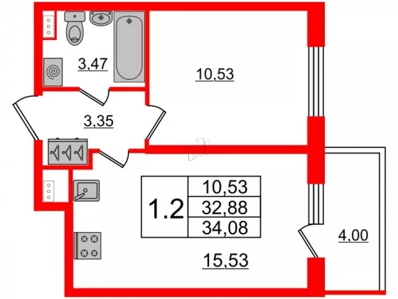 Продается однокомнатная квартира, 32.88 кв.м., 2/4 эт