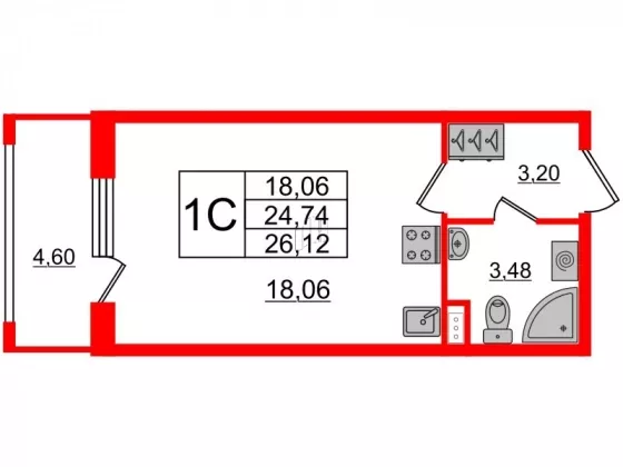 Продается однокомнатная квартира, 24.74 кв.м., 1/4 эт