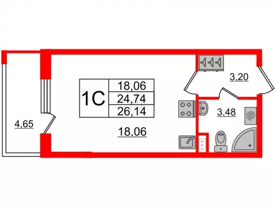 | Площадь, кв.м. | 24.74 |