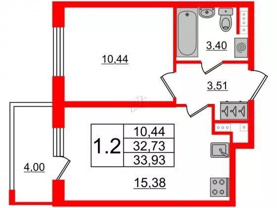 Продается однокомнатная квартира, 32.73 кв.м., 2/4 эт